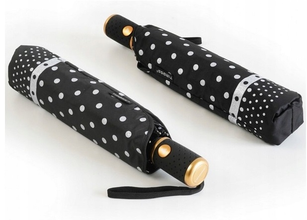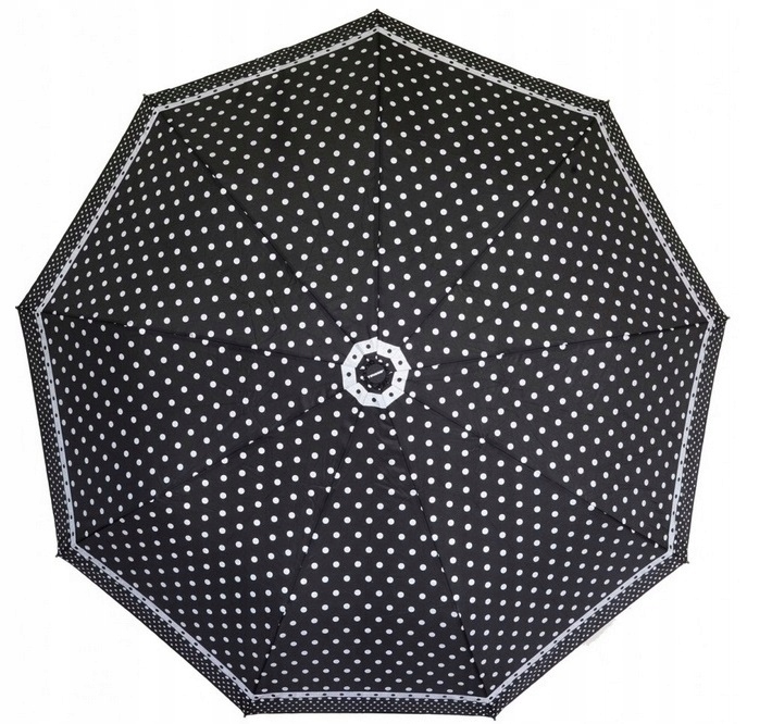 Posiada elegancki dobrze widoczny przycisk który po naciśnięciu powoduje, że parasol się rozkłada przy kolejnym wciśnięciu czasza parasola jest składana czyli pełny automat