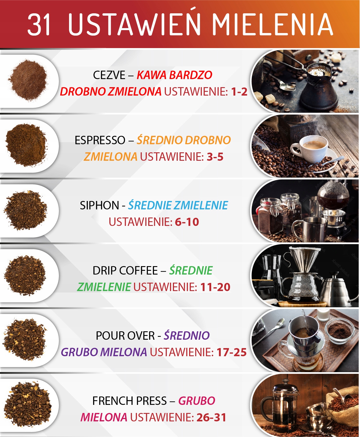 - ⭐31 ustawień mielenia