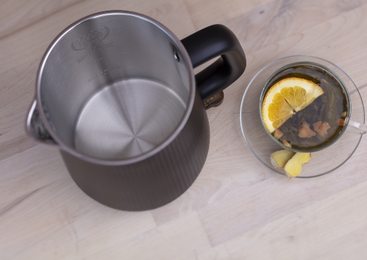 Podstawa czajnika jest obrotowa – dzbanek może być odstawiany w dowolnej pozycji, z uchwytem po lewej lub prawej stronie.