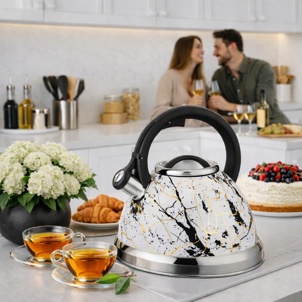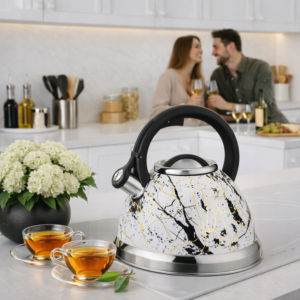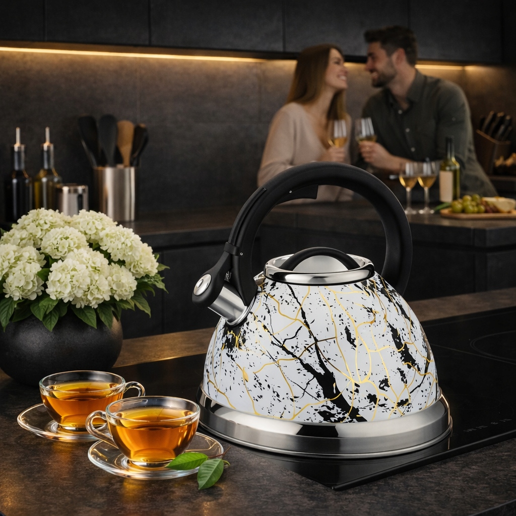 Czajnik świetnie prezentuje się na kuchence, więc zyskujesz stylowe wyposażenie kuchni.