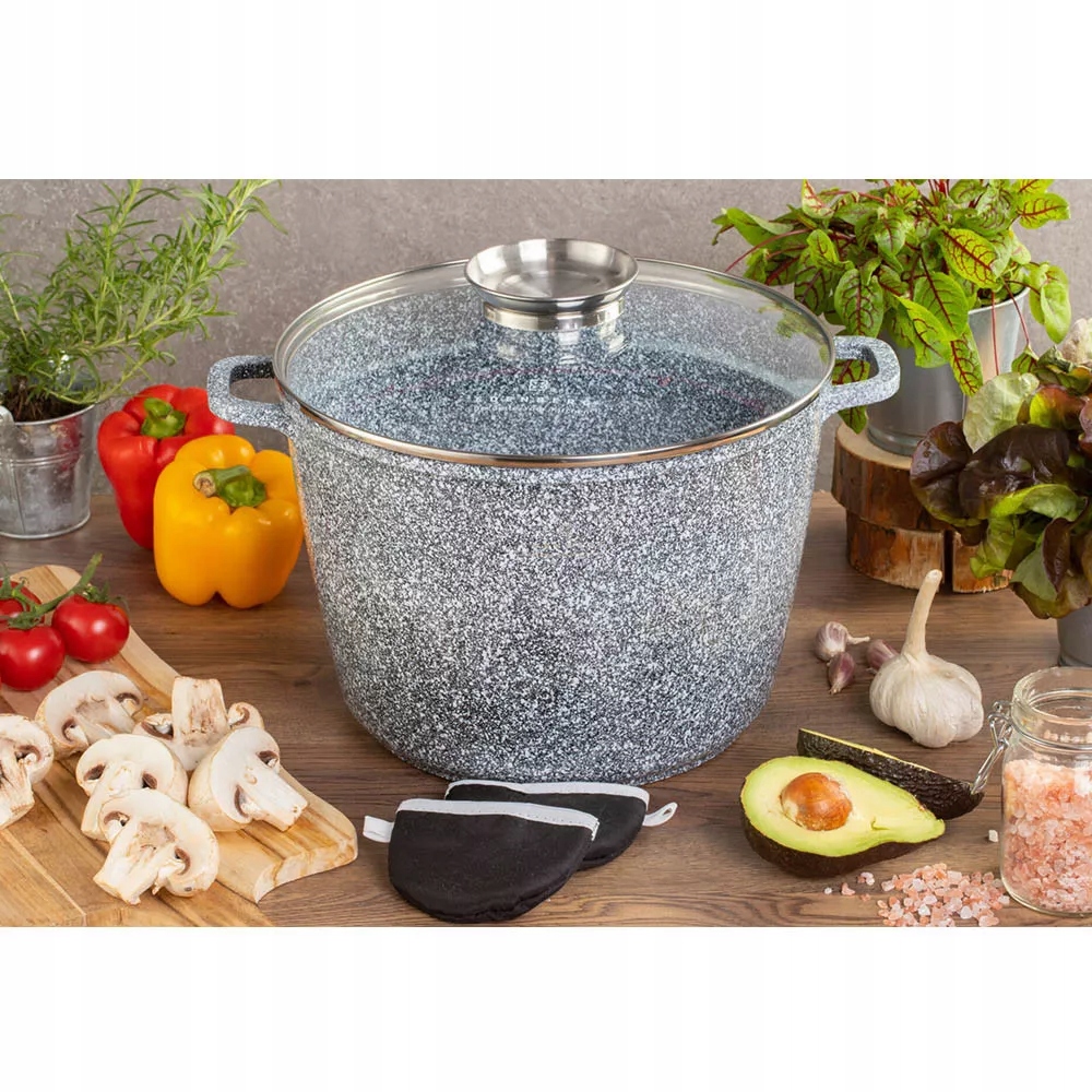 Garnek marmurowy w zestawie ze szklaną pokrywką i materiałowymi Garnek marmurowy Edenberg Cechy ⭐⭐⭐…