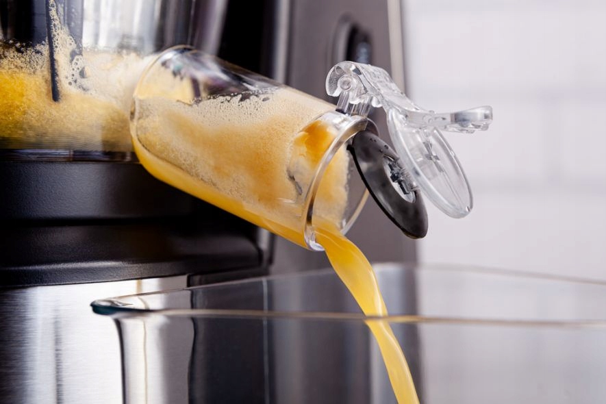 Urządzenie w przeciwieństwie do sokowirówki pracuje na niskich prędkościach obrotowych i jest niemal bezgłośne.